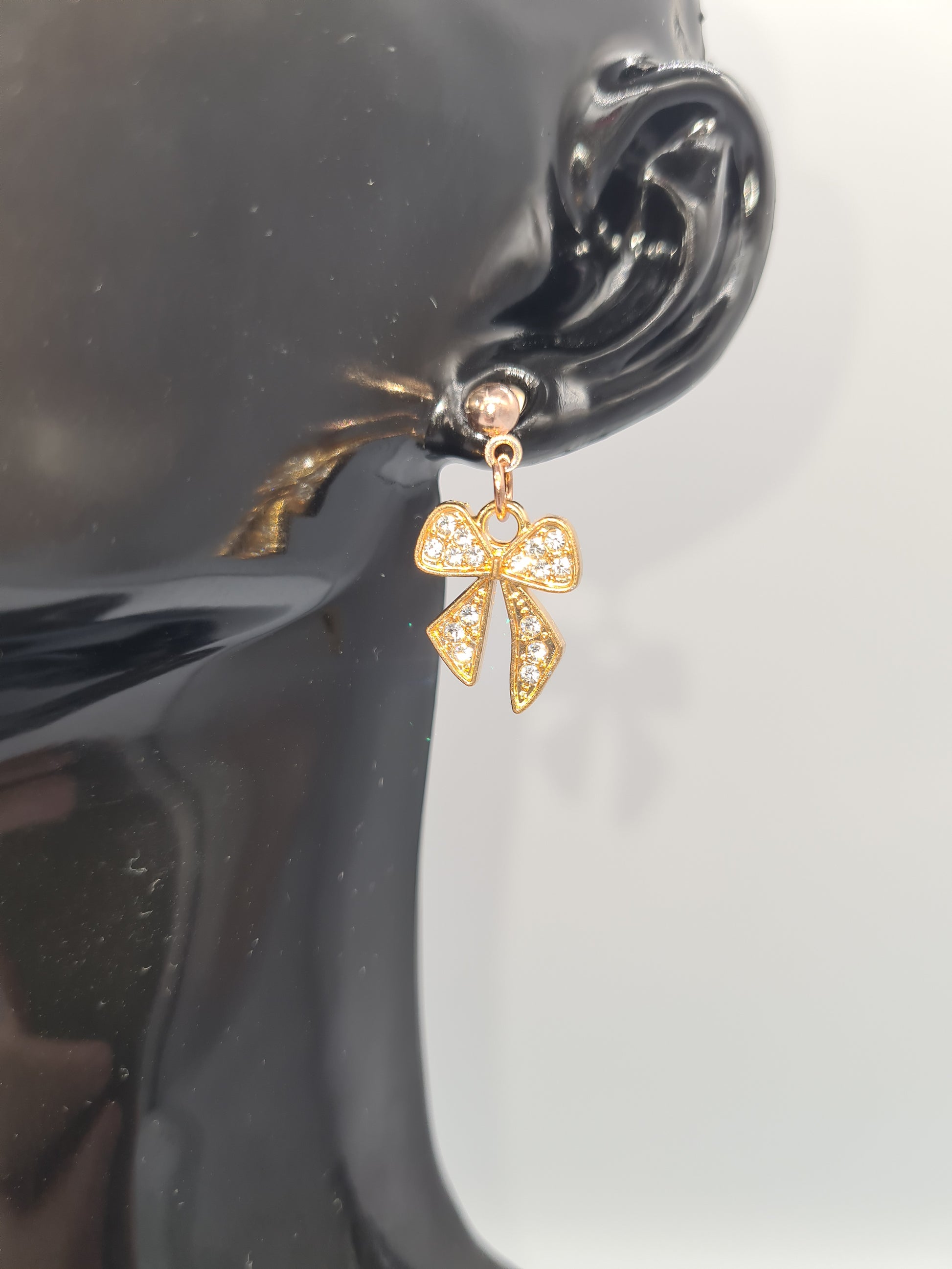 Add some sparkle to your style with these unique Bowknot, Crystal Rhinestone, Rose Gold Stud Earrings. The perfect accessory for any outfit, these earrings are sure to make a statement and add a touch of playful elegance to your look. (FYI: They also make a great gift!)