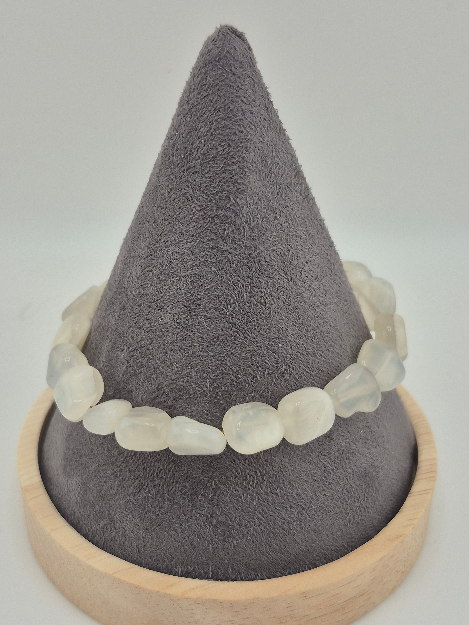 Elevate your elegance with this refined bracelet featuring white moonstone nugget beads, delicately accented with gold-toned clasp details. Available in 20cm and 18cm lengths, it offers a sophisticated touch to any ensemble while showcasing the moonstone's subtle iridescence. Perfect for those who appreciate understated luxury and timeless design.