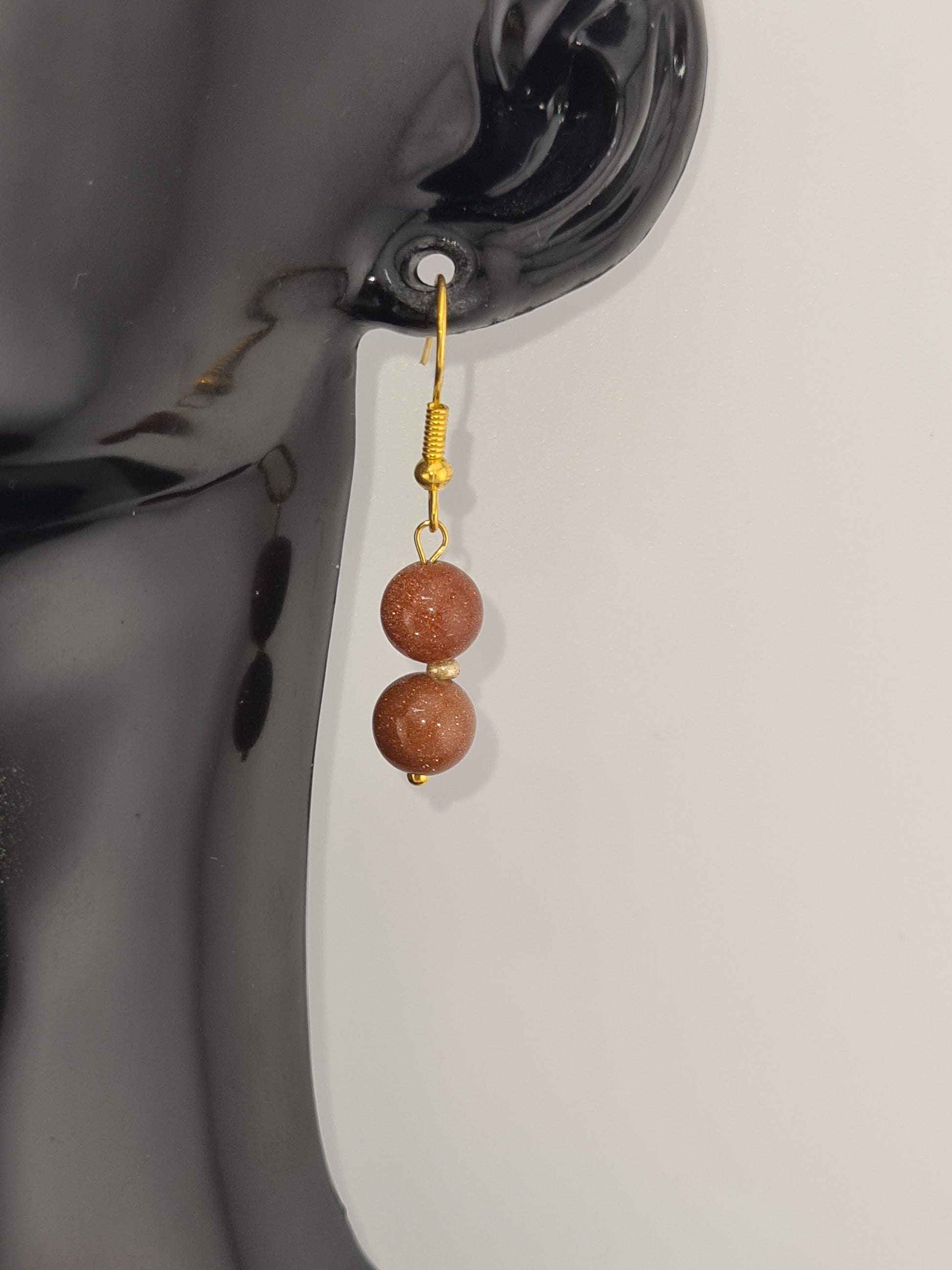 Add some sparkle to your style with these Brown Goldstone Earrings. The gold shepherd hook adds a touch of elegance to these unique earrings. Perfect for adding a pop of color to any outfit. So why settle for boring earrings when you can shine with these beauties?