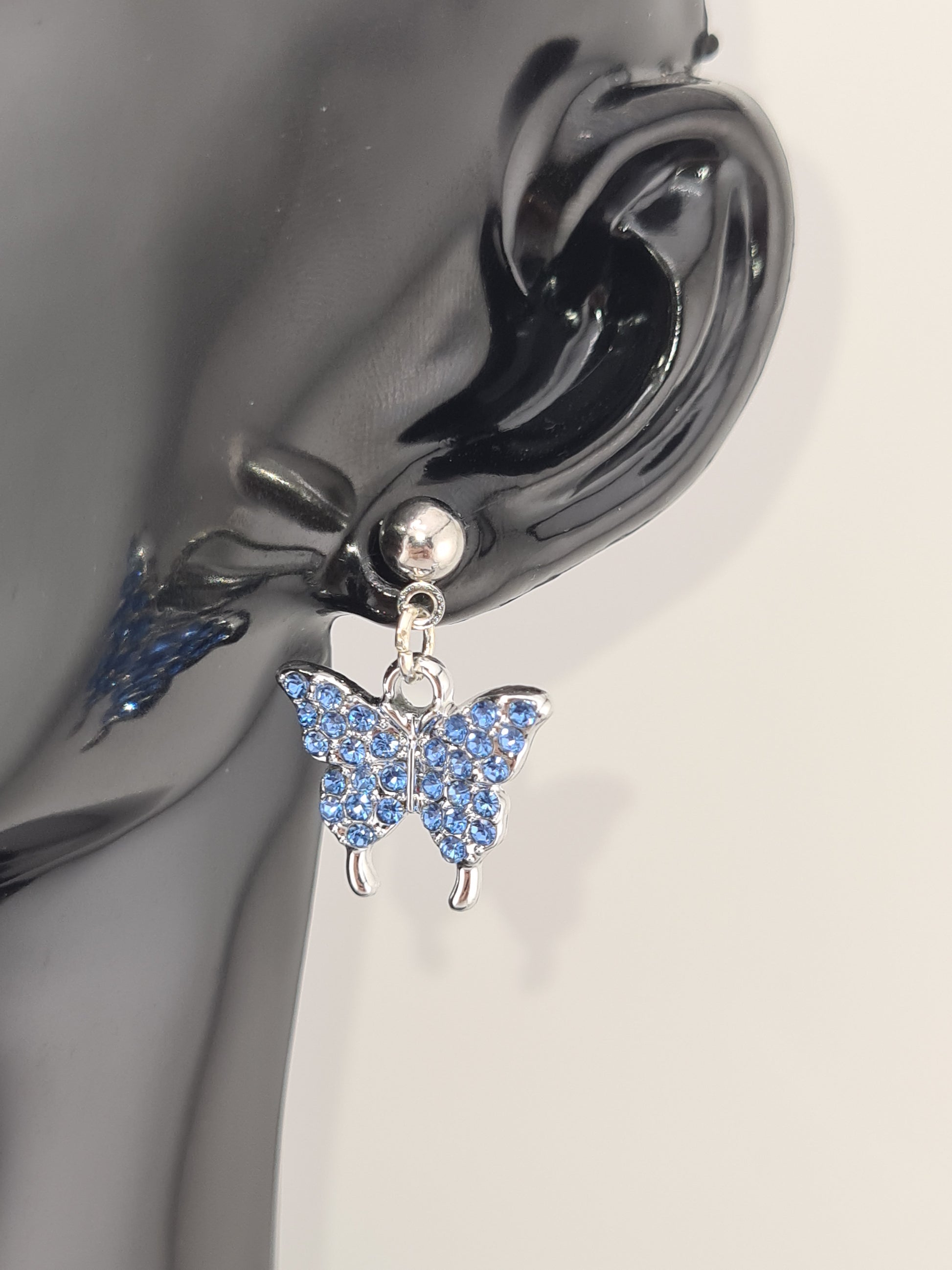 Butterfly, Rhinestone, Mixed Colour, Silver, Studs & Shepherd Hook, Earrings