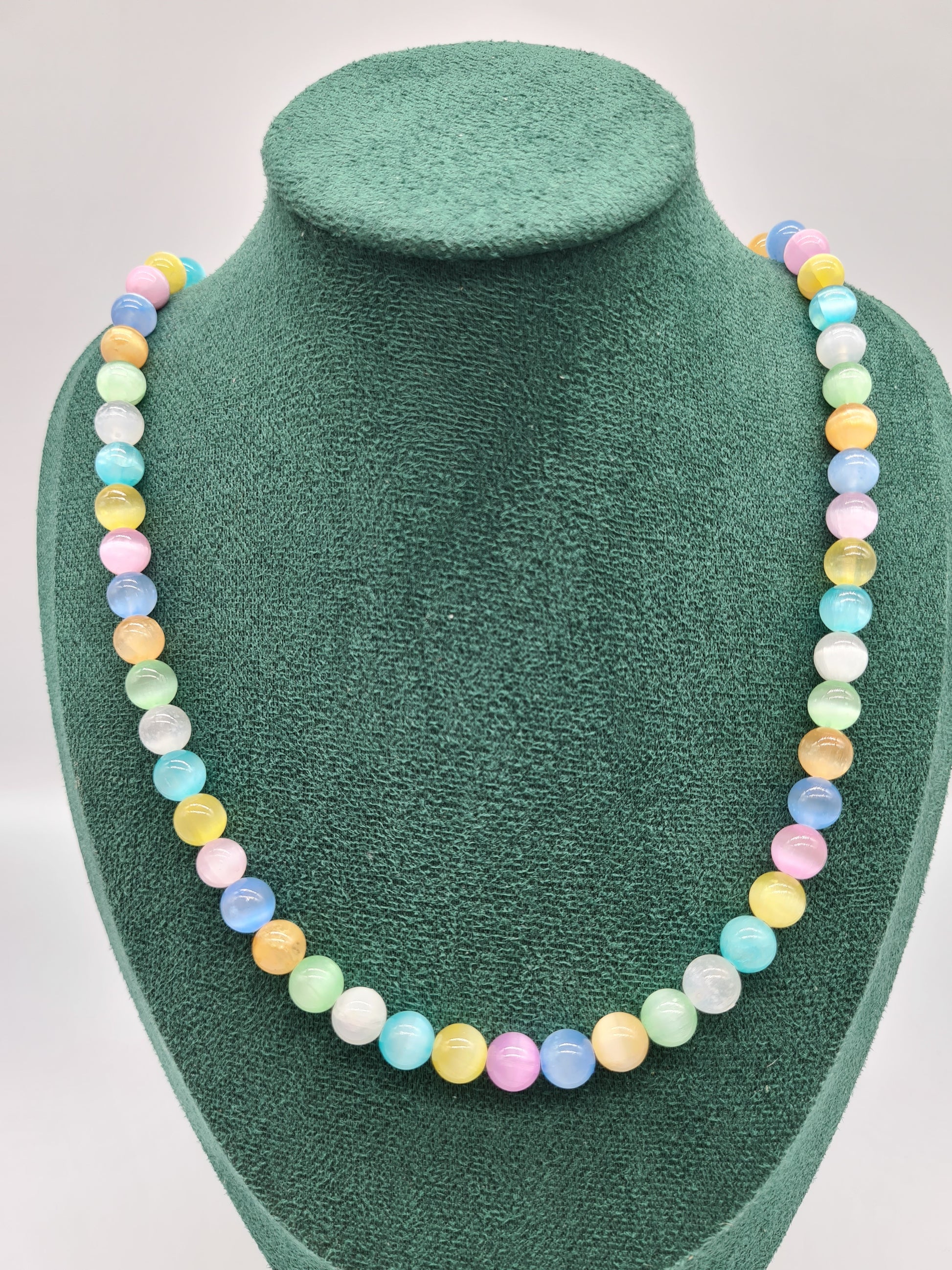 Cats Eye Multi Colour, Necklace, Silver, 65cm