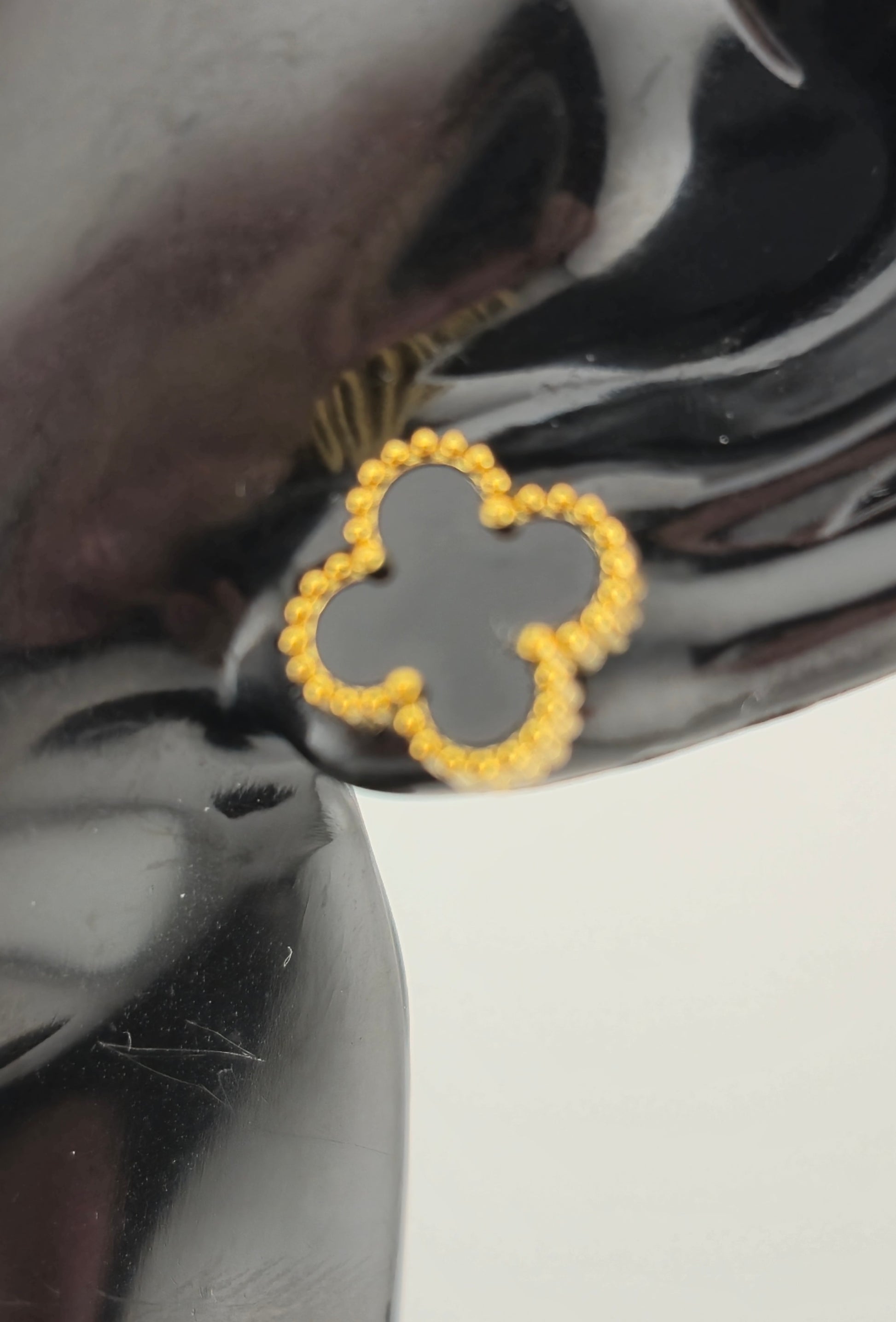 Earrings, Stud, Clover Design, Onyx and Mother of Pearl (Gold/Silver) (Small/Large)