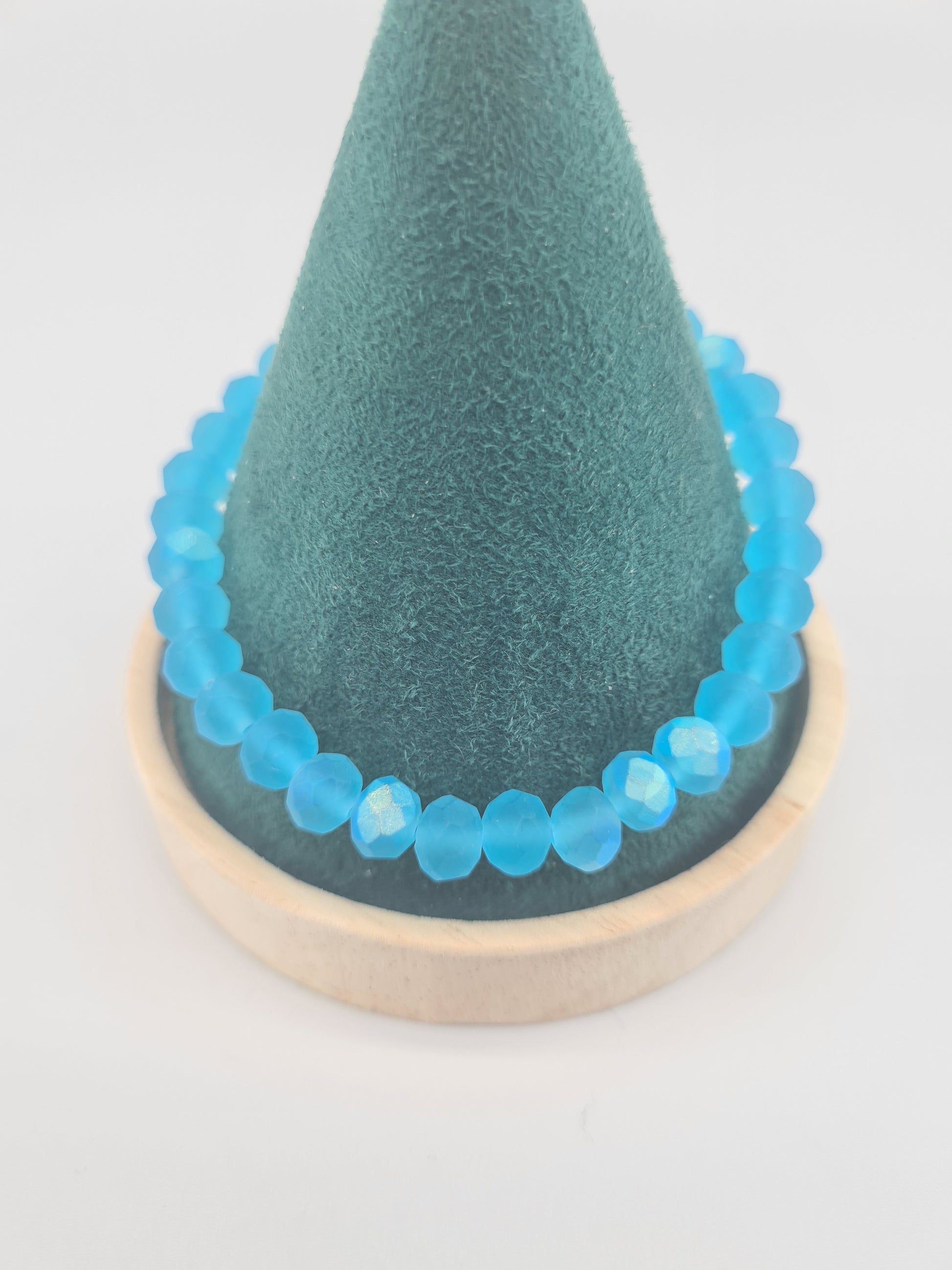Shine on with our Frosted, Faceted, Transparent Rondelle Glass Bracelets! These half AB Color Adjustable Bracelets come in various colors to suit your unique style. Let your sparkling personality shine through with this playful accessory.