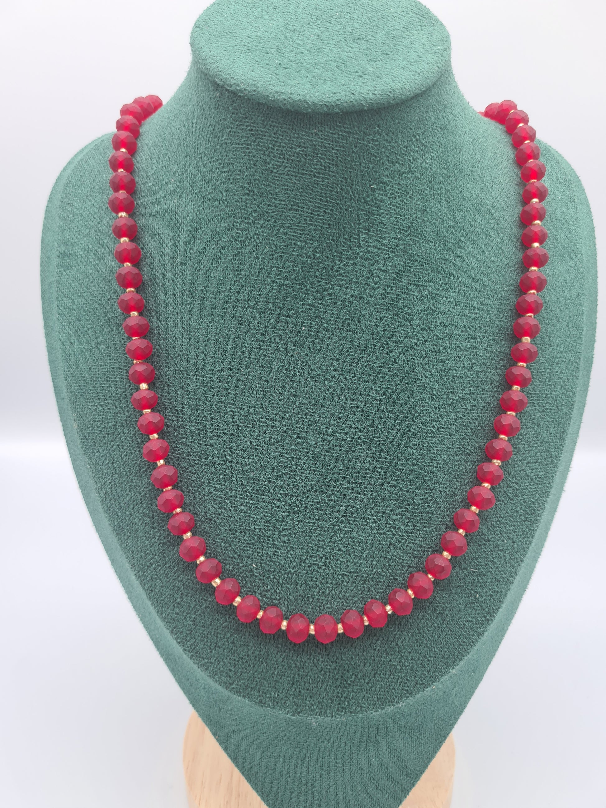 Frosted Transparent Glass, Rondelle, Red, Necklace, 60cm and 70cm
