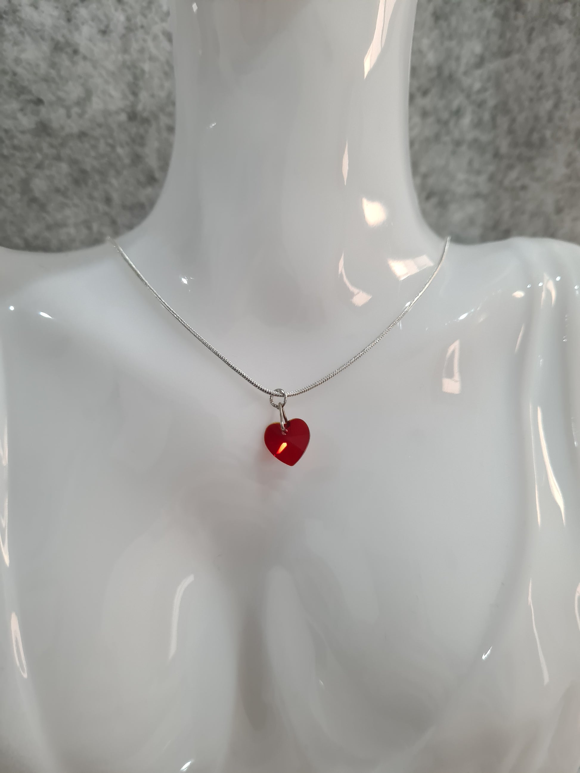 Faceted Glass Heart, Necklace, Red Ruby, Silver (Limited Edition)