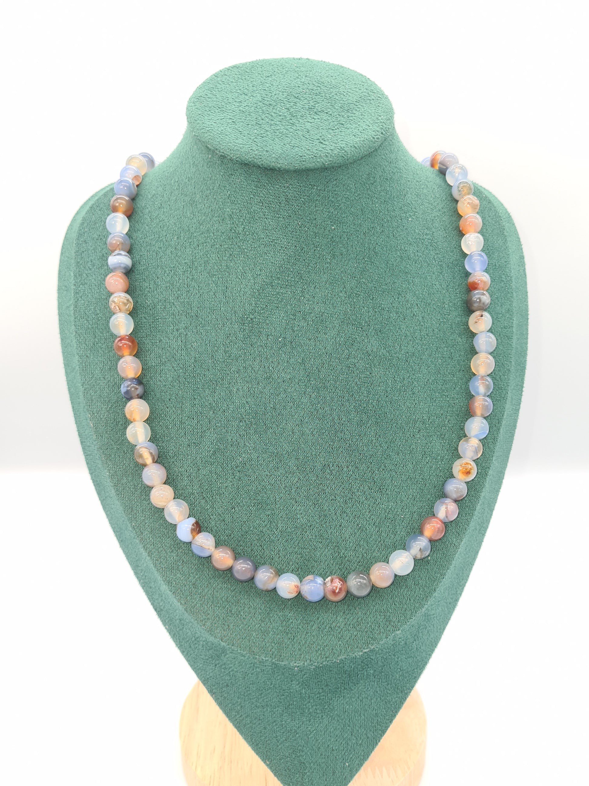 Elevate your style with our Natural Agate Light Blue Necklace. Crafted from exquisite agate stones, this necklace exudes sophistication and artistry. Its light blue hue will add a touch of elegance to any outfit while its natural beauty will dazzle with every wear. Elevate your look with this exclusive piece.