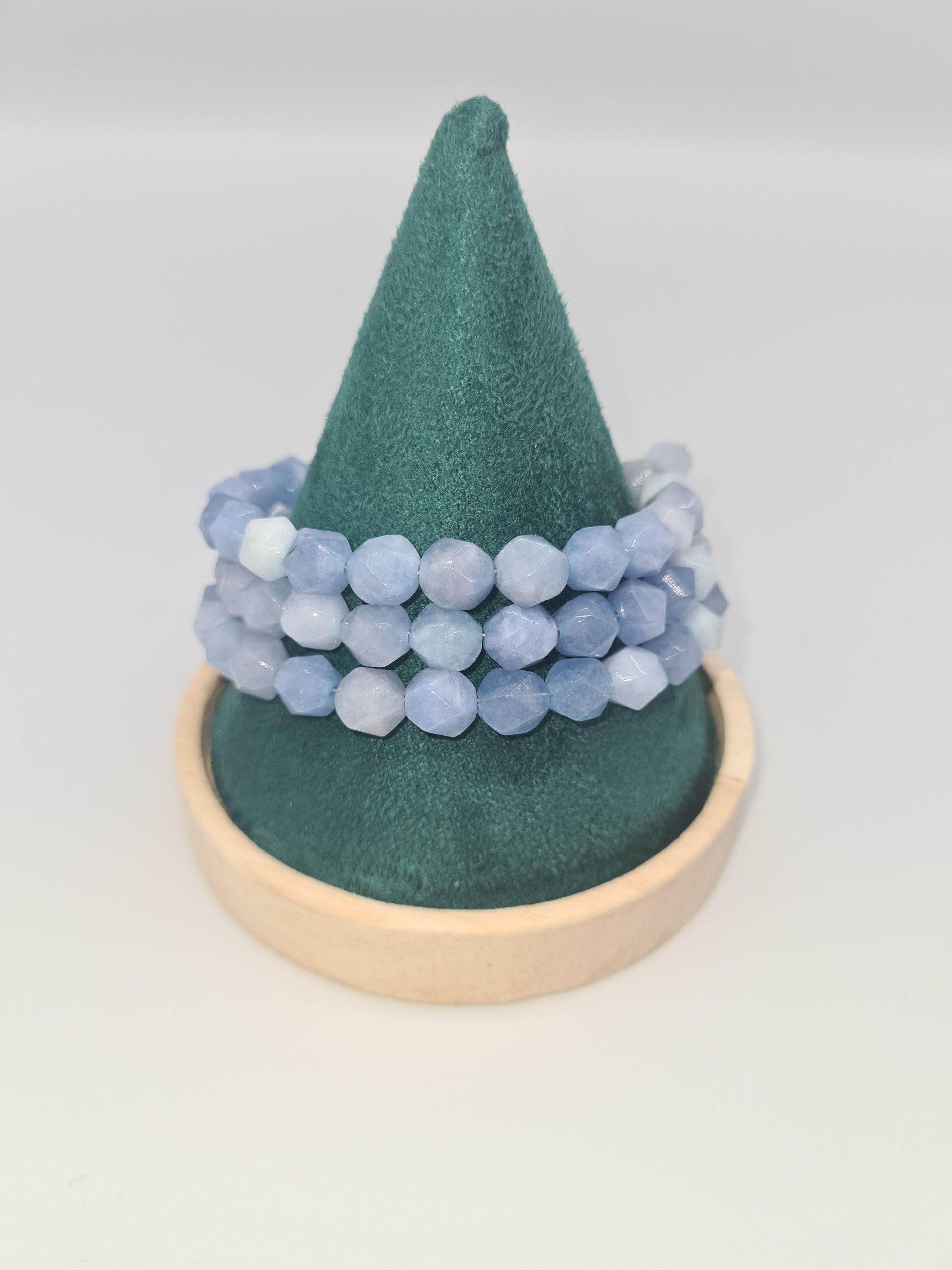 Keep your memories close with our Natural Quartz Faceted Polygon Bracelet. Its light steel blue color and multi-strand design add a touch of elegance to any outfit. With its unique polygon shape, this bracelet is sure to be a conversation starter. A must-have accessory for any quirky and playful individual!