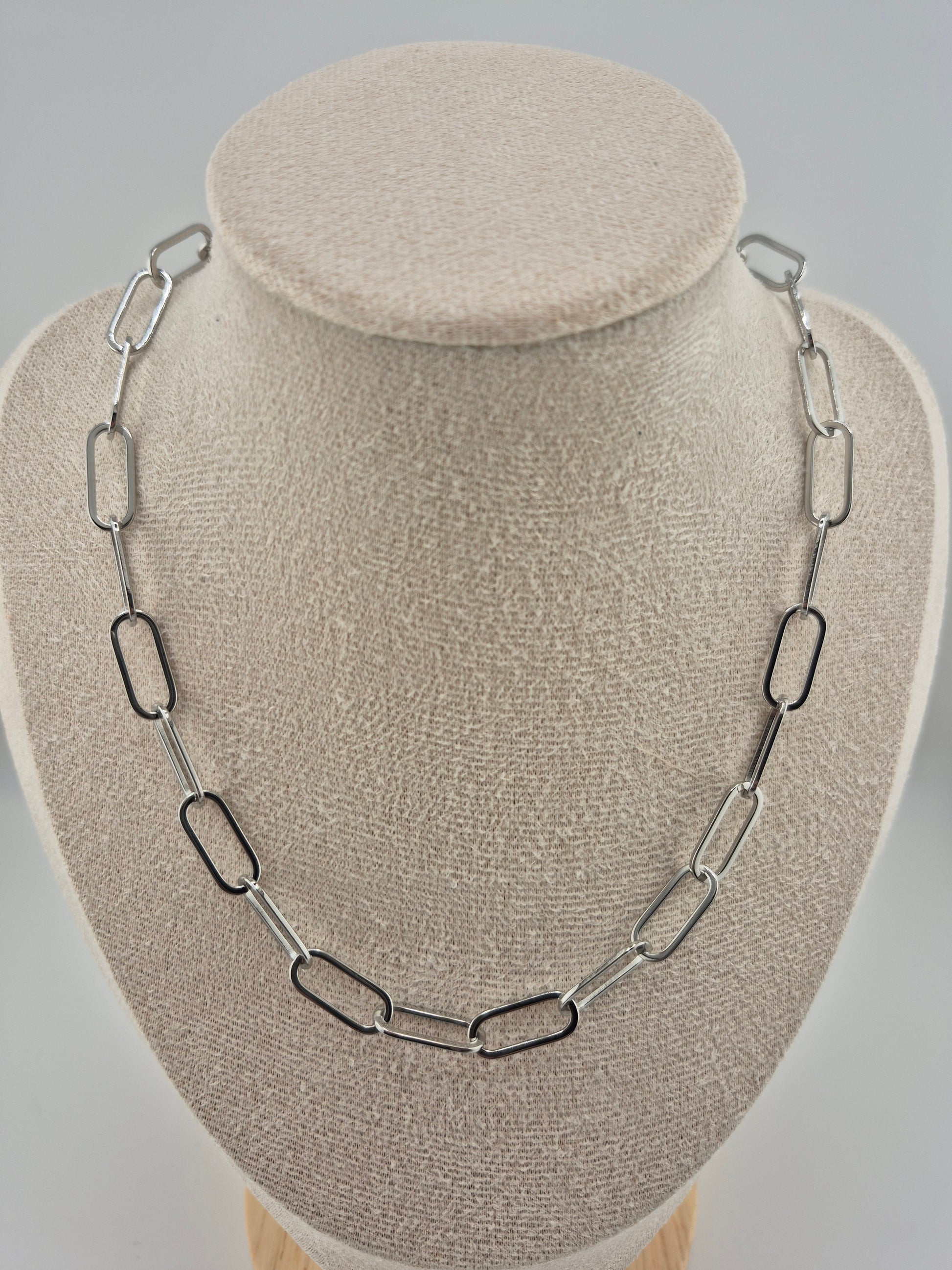 Necklace, Paperclip Chain, Stainless Steel, Platinum Plated, Choker 40cm