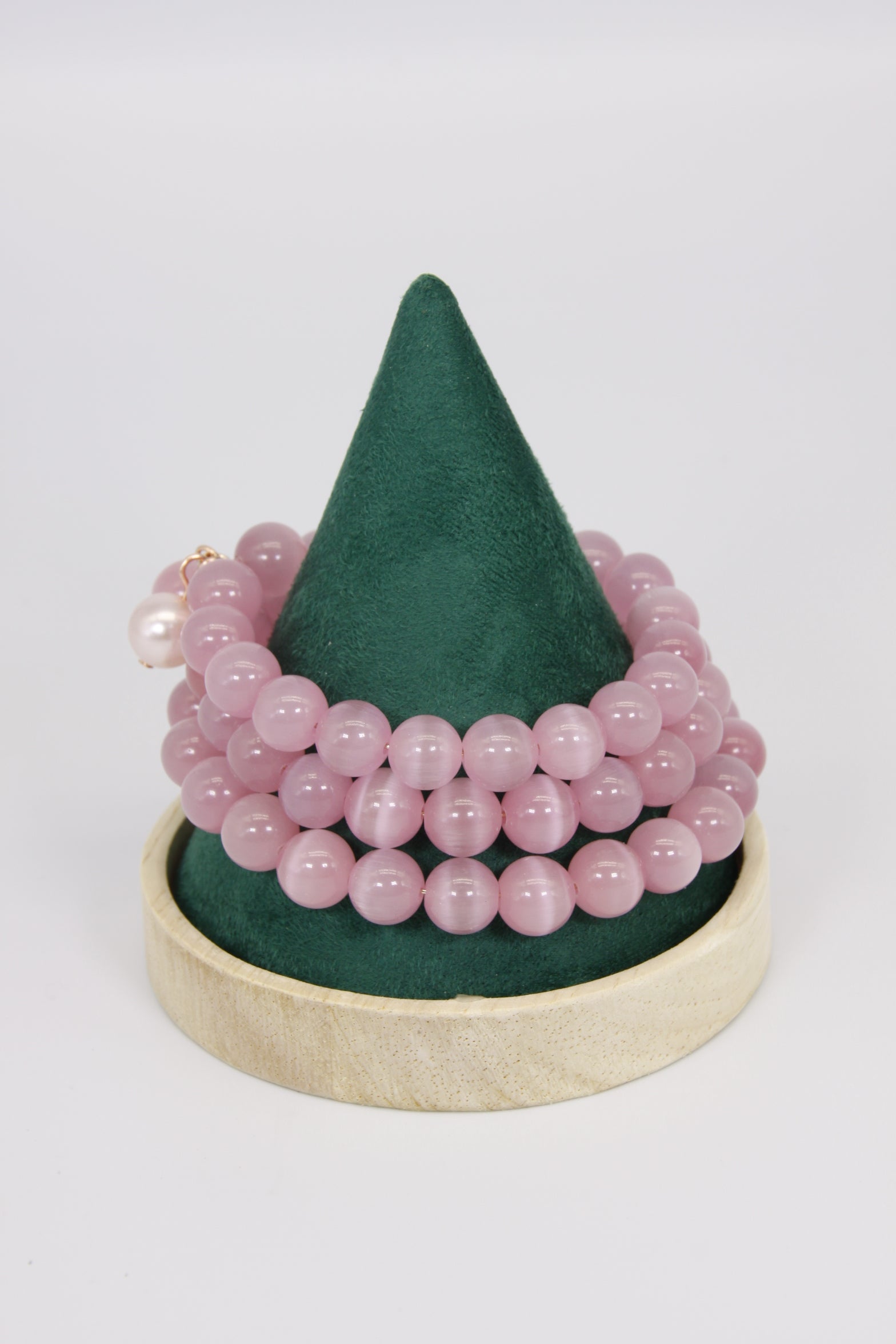 Pink Cat's Eye Memory Bracelet - Multi-strand