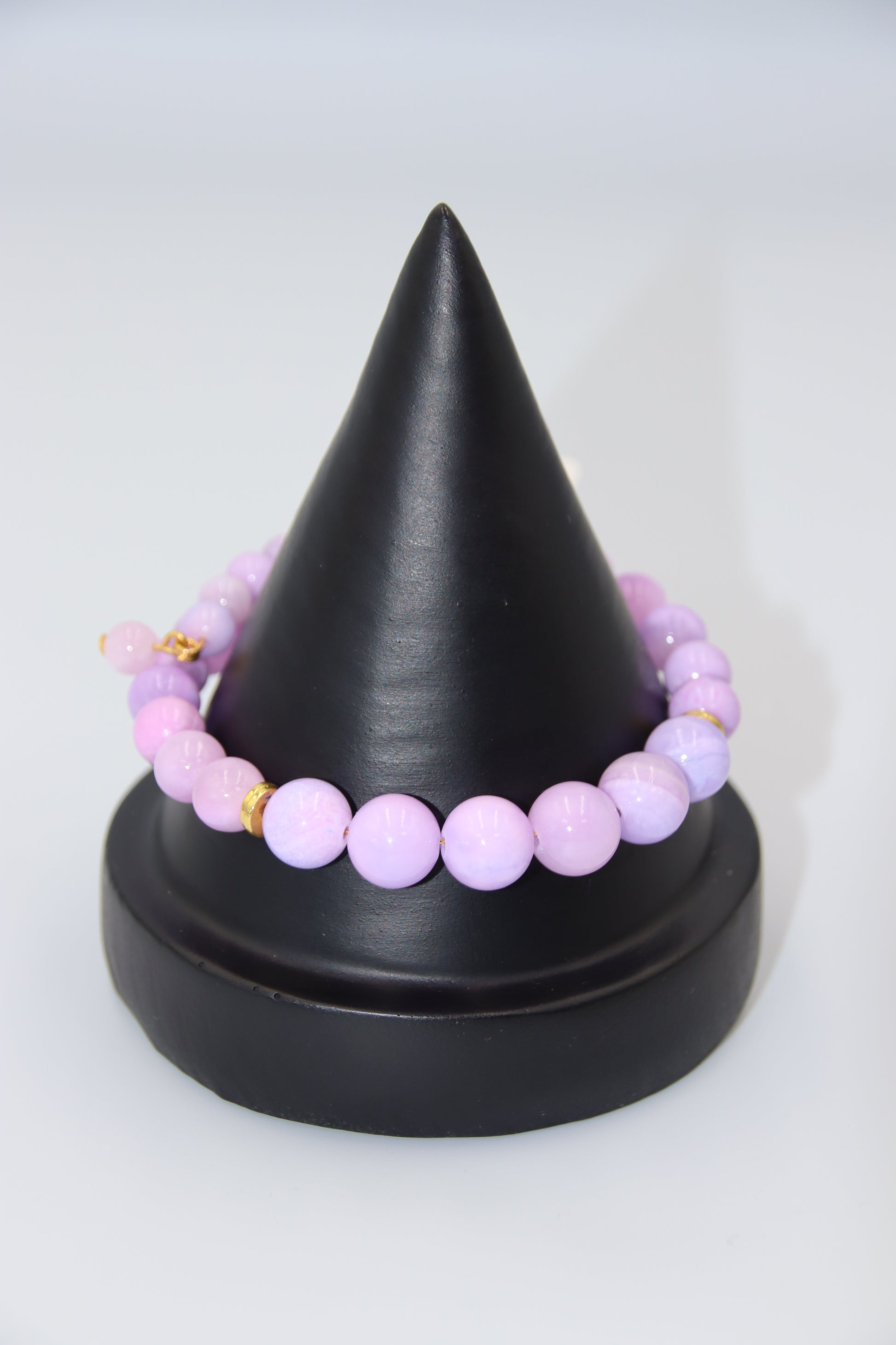 Experience a moment of tranquility with our Purple Jade Memory Bracelet. Adorned with Purple Jade Beads, this bracelet exudes a sense of peace and calmness. The delicate Gold trim and Gold Hematite Spacers add a touch of elegance to this one-of-a-kind piece.