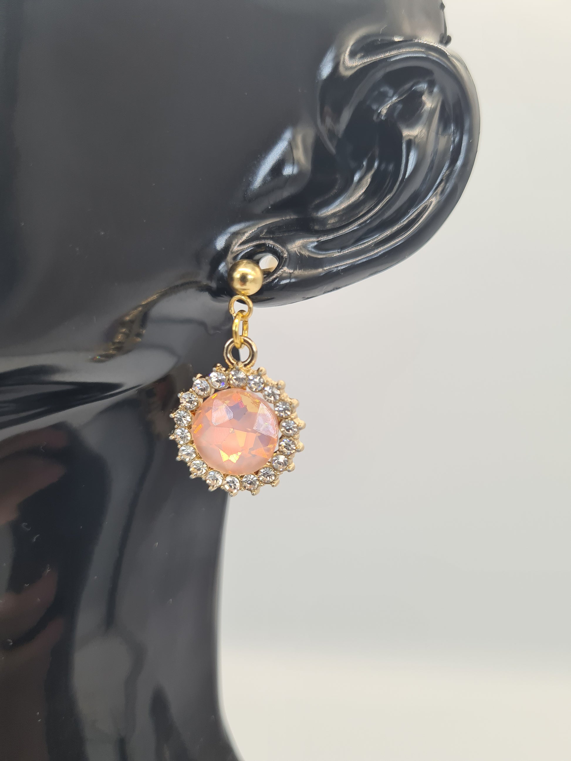 Rhinestone, Flat Round, Mixed Colour, Gold and Silver Stud, Earrings