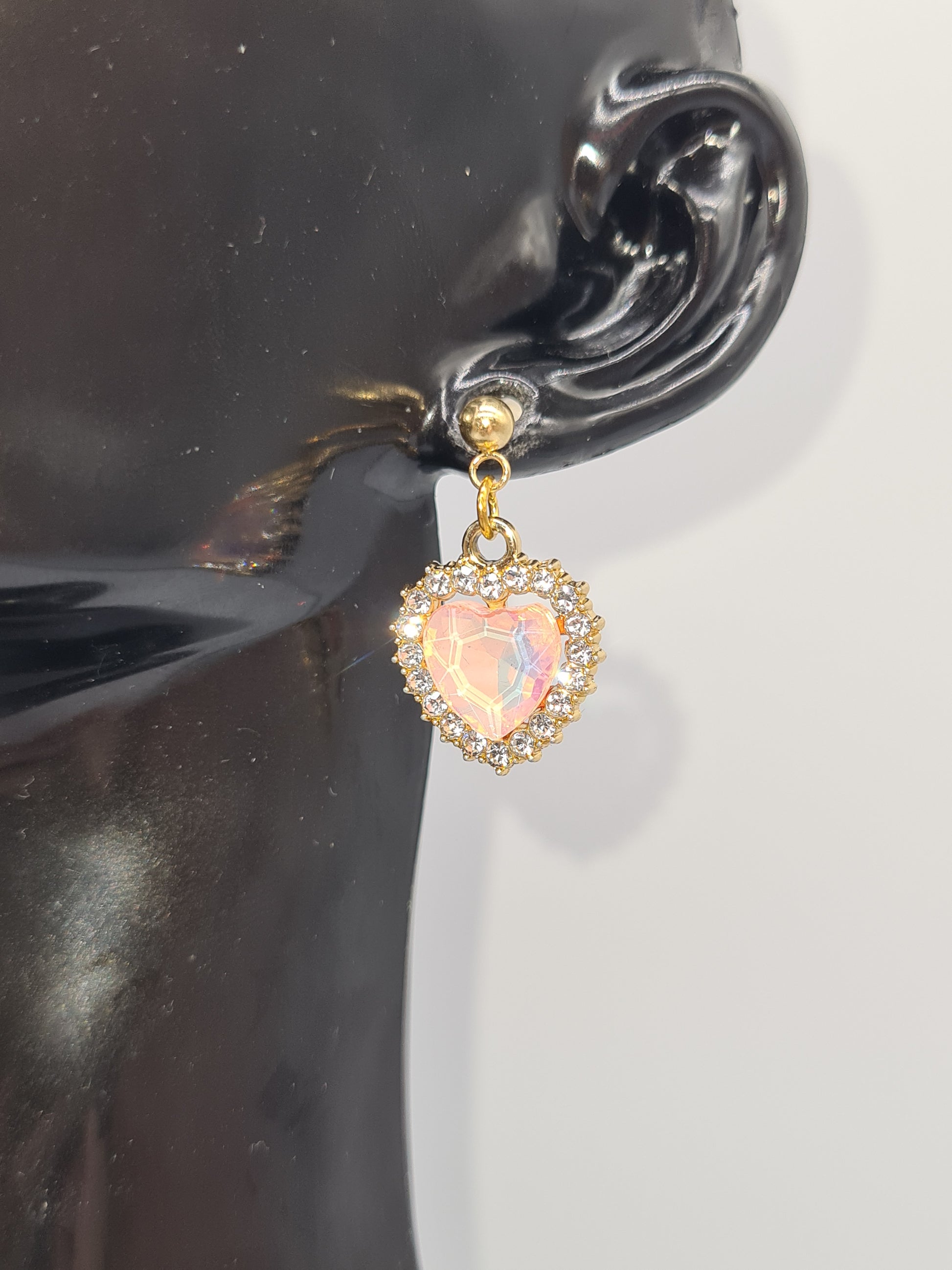 Rhinestone, Hearts, Mixed Colour, Gold and Silver Stud, Earrings